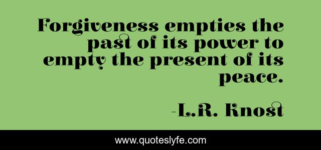 This page presents the quote "Forgiveness empties the past of its power to empty the present of its peace.". Author of this quote is L.R. Knost. This quote is about pain, peace, past, hurts, forgiveness, present,.