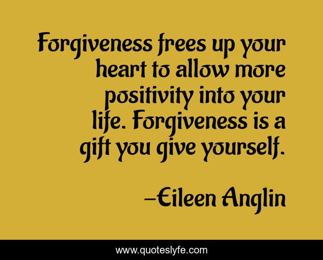 This page presents the quote "Forgiveness frees up your heart to allow more positivity into your life. Forgiveness is a gift you give yourself.". Author of this quote is Eileen Anglin. This quote is about forgiveness, forgiveness-and-letting-go, law-of-attraction,.