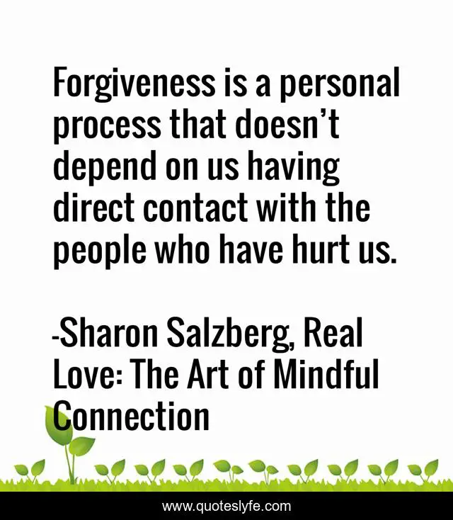 This page presents the quote "Forgiveness is a personal process that doesn’t depend on us having direct contact with the people who have hurt us.". Author of this quote is Sharon Salzberg, Real Love: The Art of Mindful Connection. This quote is about love, mindfulness, forgiveness, personal-growth, toxic-relationships, hurt, destructive-relationships, real-love, affection,.