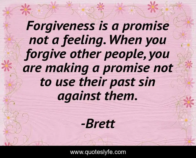 This page presents the quote "Forgiveness is a promise not a feeling. When you forgive other people, you are making a promise not to use their past sin against them.". Author of this quote is Brett. .