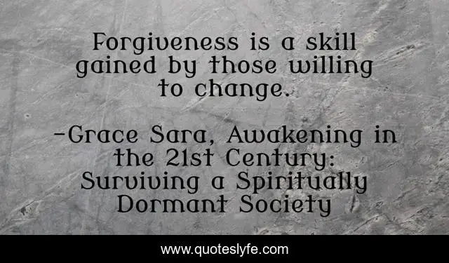 "Grace Sara, Awakening in the 21st Century: Surviving a Spiritually Dormant Society Quotes." Quoteslyfe.com, 2025. Fri. 05 Dec. 2025. <https://www.quoteslyfe.com/quote/Forgiveness-is-a-skill-gained-by-those-15473>.