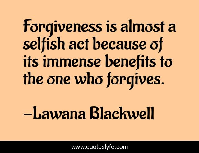 This page presents the quote "Forgiveness is almost a selfish act because of its immense benefits to the one who forgives.". Author of this quote is Lawana Blackwell. This quote is about selfish, forgiveness,.