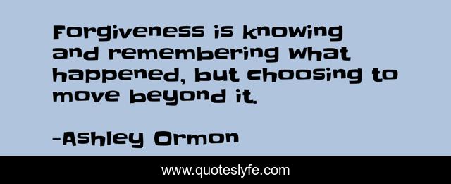 This page presents the quote "Forgiveness is knowing and remembering what happened, but choosing to move beyond it.". Author of this quote is Ashley Ormon. This quote is about forgiveness, forgive,.