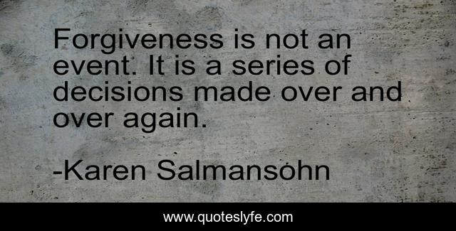"Karen Salmansohn Quotes." Quoteslyfe.com, 2025. Fri. 05 Dec. 2025. <https://www.quoteslyfe.com/quote/Forgiveness-is-not-an-event-It-is-122005>.