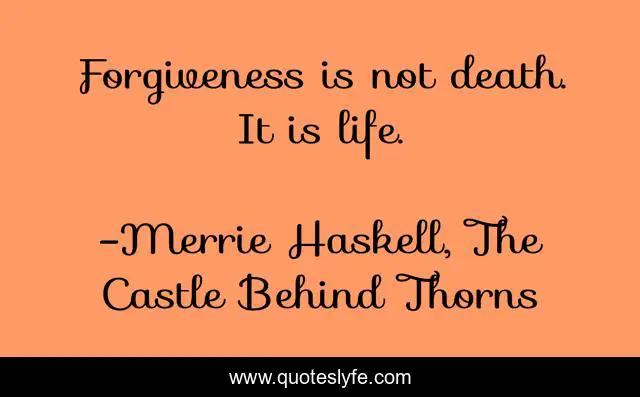 "Merrie Haskell, The Castle Behind Thorns Quotes." Quoteslyfe.com, 2025. Sat. 06 Dec. 2025. <https://www.quoteslyfe.com/quote/Forgiveness-is-not-death-It-is-life-122068>.