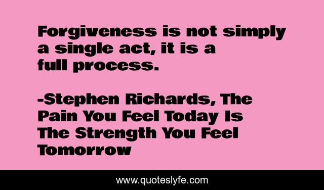 "Stephen Richards, The Pain You Feel Today Is The Strength You Feel Tomorrow Quotes." Quoteslyfe.com, 2025. Fri. 05 Dec. 2025. <https://www.quoteslyfe.com/quote/Forgiveness-is-not-simply-a-single-act-78312>.
