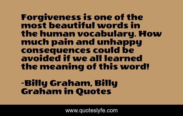 This page presents the quote "Forgiveness is one of the most beautiful words in the human vocabulary. How much pain and unhappy consequences could be avoided if we all learned the meaning of this word!". Author of this quote is Billy Graham, Billy Graham in Quotes. This quote is about forgiveness, billy-graham,.