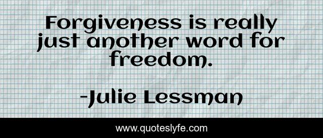 This page presents the quote "Forgiveness is really just another word for freedom.". Author of this quote is Julie Lessman. This quote is about freedom, forgiveness,.