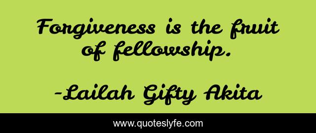 This page presents the quote "Forgiveness is the fruit of fellowship.". Author of this quote is Lailah Gifty Akita. This quote is about christian, family, god, fellowship, inspirational, enthusiasm, forgiveness, friends,.