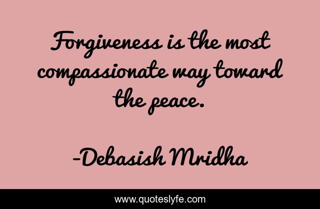 This page presents the quote "Forgiveness is the most compassionate way toward the peace.". Author of this quote is Debasish Mridha. This quote is about compassionate, peace, debasish-mridha, quotes, inspirational, enthusiasm, forgiveness, debasish-mridha-m-d, philosophy,.
