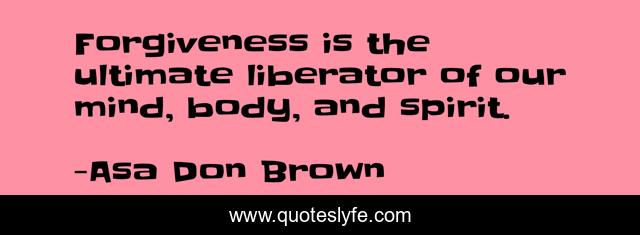This page presents the quote "Forgiveness is the ultimate liberator of our mind, body, and spirit.". Author of this quote is Asa Don Brown. This quote is about forgiveness, health, happiness,.