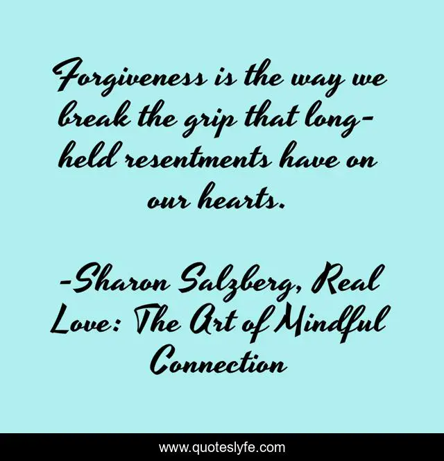 This page presents the quote "Forgiveness is the way we break the grip that long-held resentments have on our hearts.". Author of this quote is Sharon Salzberg, Real Love: The Art of Mindful Connection. This quote is about love, mindfulness, personal-growth, resentment, resentments, forgiveness, affection,.
