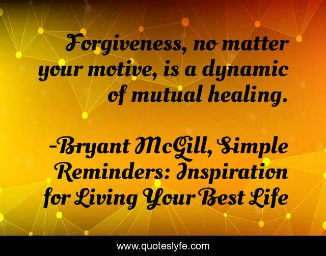 This page presents the quote "Forgiveness, no matter your motive, is a dynamic of mutual healing.". Author of this quote is Bryant McGill, Simple Reminders: Inspiration for Living Your Best Life. This quote is about spirituality, growth, forgiveness, healing, inspiration,.