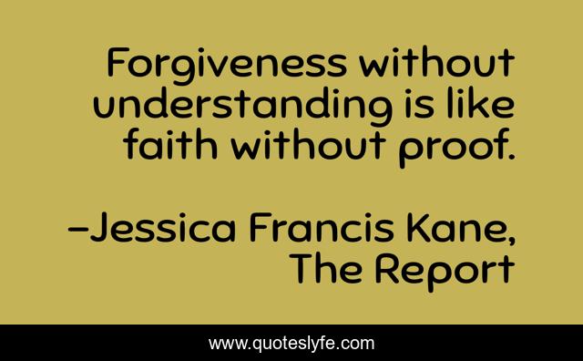 This page presents the quote "Forgiveness without understanding is like faith without proof.". Author of this quote is Jessica Francis Kane, The Report. This quote is about faith, forgiveness,.
