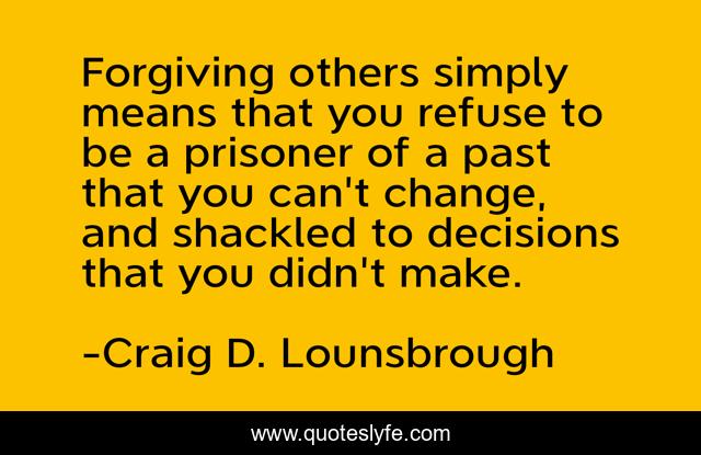This page presents the quote "Forgiving others simply means that you refuse to be a prisoner of a past that you can't change, and shackled to decisions that you didn't make.". Author of this quote is Craig D. Lounsbrough. .