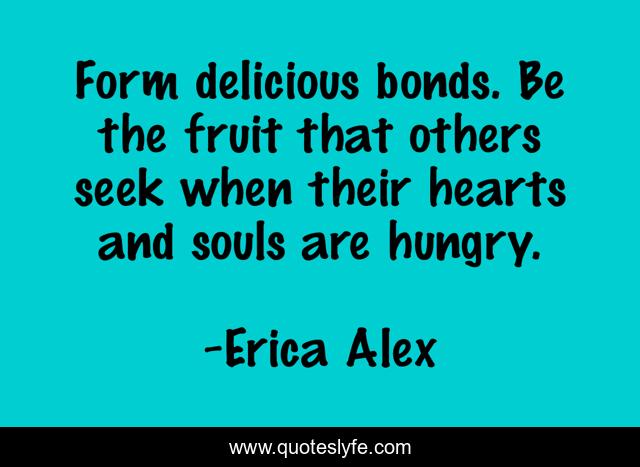 This page presents the quote "Form delicious bonds. Be the fruit that others seek when their hearts and souls are hungry.". Author of this quote is Erica Alex. This quote is about relationships, heart, soul, bonds,.