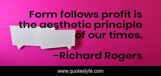 This page presents the quote "Form follows profit is the aesthetic principle of our times.". Author of this quote is Richard Rogers. This quote is about profit, principle, aesthetic,.