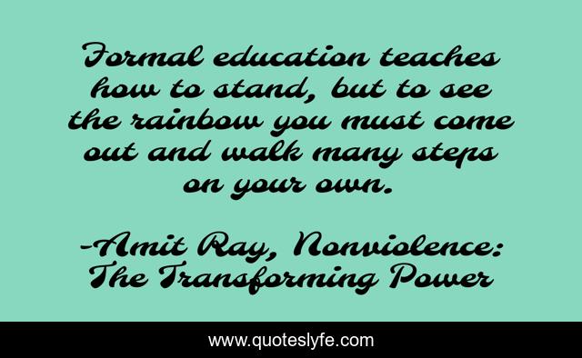 "Amit Ray, Nonviolence: The Transforming Power Quotes." Quoteslyfe.com, 2025. Mon. 08 Dec. 2025. <https://www.quoteslyfe.com/quote/Formal-education-teaches-how-to-stand-but-33404>.
