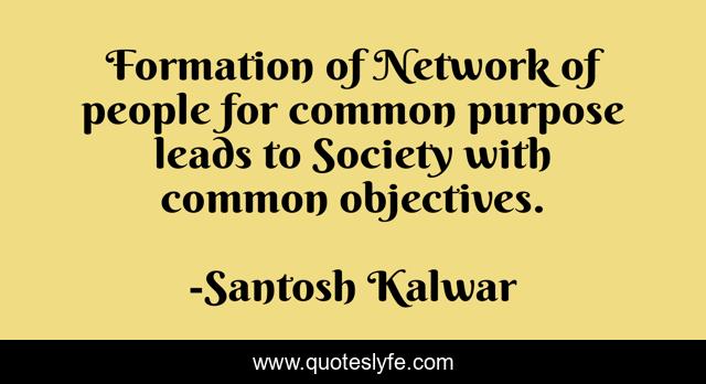 This page presents the quote "Formation of Network of people for common purpose leads to Society with common objectives.". Author of this quote is Santosh Kalwar. .