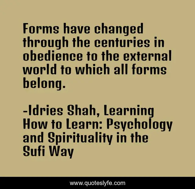 This page presents the quote "Forms have changed through the centuries in obedience to the external world to which all forms belong.". Author of this quote is Idries Shah, Learning How to Learn: Psychology and Spirituality in the Sufi Way. This quote is about society, sufis, history, psychology, sufism,.