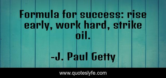 This page presents the quote "Formula for success: rise early, work hard, strike oil.". Author of this quote is J. Paul Getty. This quote is about rise, success, work hard,.