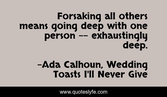 "Ada Calhoun, Wedding Toasts I'll Never Give Quotes." Quoteslyfe.com, 2025. Fri. 05 Dec. 2025. <https://www.quoteslyfe.com/quote/Forsaking-all-others-means-going-deep-with-76944>.
