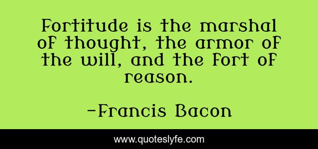 This page presents the quote "Fortitude is the marshal of thought, the armor of the will, and the fort of reason.". Author of this quote is Francis Bacon. This quote is about thought, reason,.