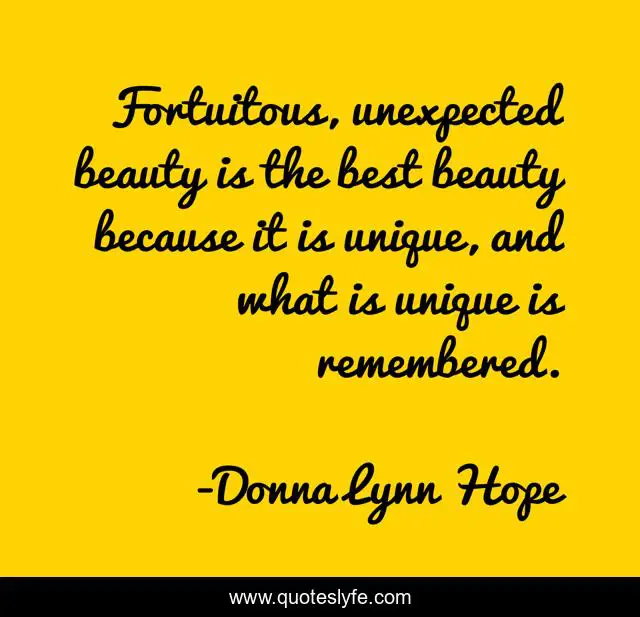 "Donna Lynn Hope Quotes." Quoteslyfe.com, 2025. Mon. 08 Dec. 2025. <https://www.quoteslyfe.com/quote/Fortuitous-unexpected-beauty-is-the-best-beauty-165453>.