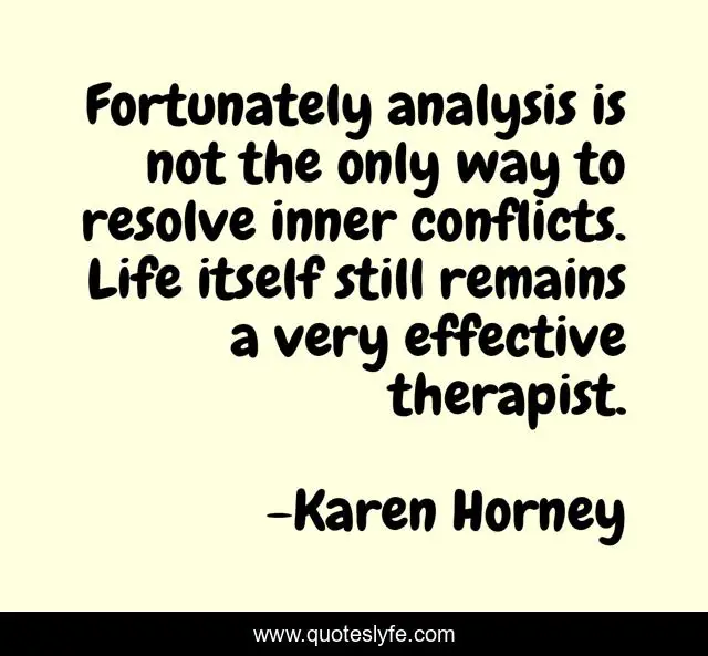 This page presents the quote "Fortunately analysis is not the only way to resolve inner conflicts. Life itself still remains a very effective therapist.". Author of this quote is Karen Horney. This quote is about still, way, analysis,.