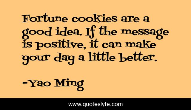This page presents the quote "Fortune cookies are a good idea. If the message is positive, it can make your day a little better.". Author of this quote is Yao Ming. This quote is about better, good, day,.