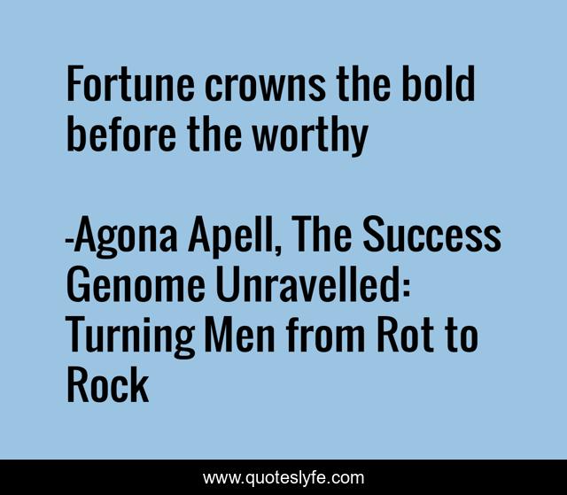 "Agona Apell, The Success Genome Unravelled: Turning Men from Rot to Rock Quotes." Quoteslyfe.com, 2025. Sat. 06 Dec. 2025. <https://www.quoteslyfe.com/quote/Fortune-crowns-the-bold-before-the-worthy-37455>.