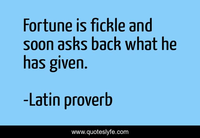 This page presents the quote "Fortune is fickle and soon asks back what he has given.". Author of this quote is Latin proverb. This quote is about destiny, fate,.