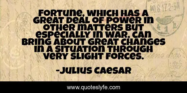 This page presents the quote "Fortune, which has a great deal of power in other matters but especially in war, can bring about great changes in a situation through very slight forces.". Author of this quote is Julius Caesar. This quote is about great, changes, power,.
