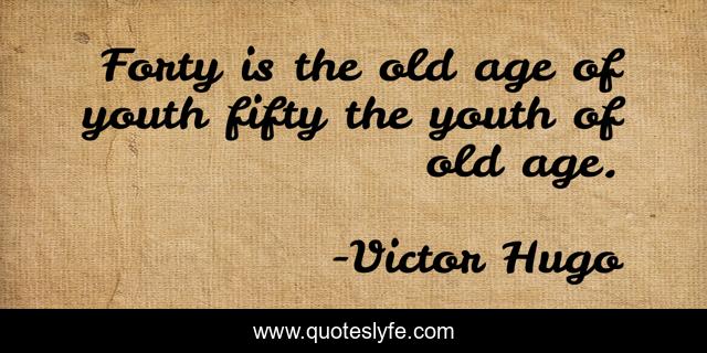 This page presents the quote "Forty is the old age of youth fifty the youth of old age.". Author of this quote is Victor Hugo. This quote is about youth, old age, fifty,.