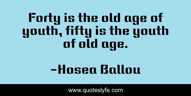 This page presents the quote "Forty is the old age of youth, fifty is the youth of old age.". Author of this quote is Hosea Ballou. This quote is about youth, old age, fifty,.