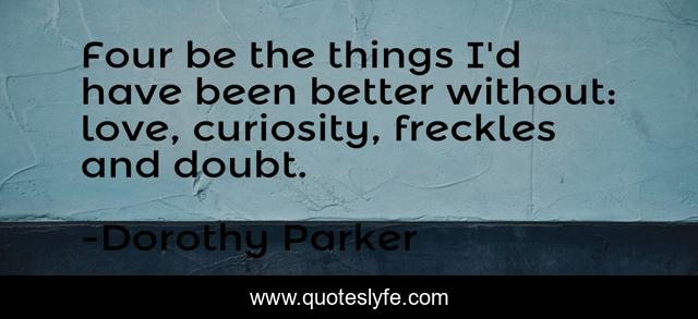 This page presents the quote "Four be the things I'd have been better without: love, curiosity, freckles and doubt.". Author of this quote is Dorothy Parker. .