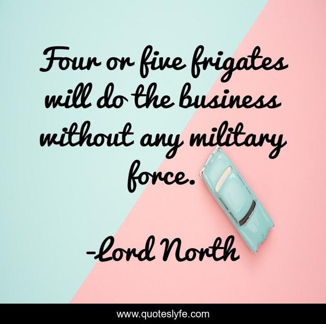 This page presents the quote "Four or five frigates will do the business without any military force.". Author of this quote is Lord North. This quote is about military, without,.