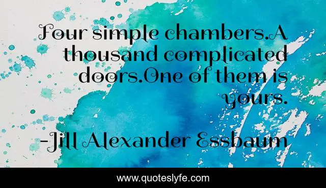 "Jill Alexander Essbaum Quotes." Quoteslyfe.com, 2025. Sun. 07 Dec. 2025. <https://www.quoteslyfe.com/quote/Four-simple-chambers-A-thousand-complicated-doors-158403>.