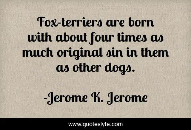 This page presents the quote "Fox-terriers are born with about four times as much original sin in them as other dogs.". Author of this quote is Jerome K. Jerome. .