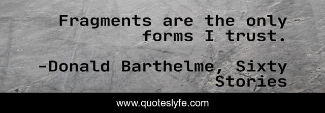 "Donald Barthelme, Sixty Stories Quotes." Quoteslyfe.com, 2025. Fri. 05 Dec. 2025. <https://www.quoteslyfe.com/quote/Fragments-are-the-only-forms-I-trust-119953>.