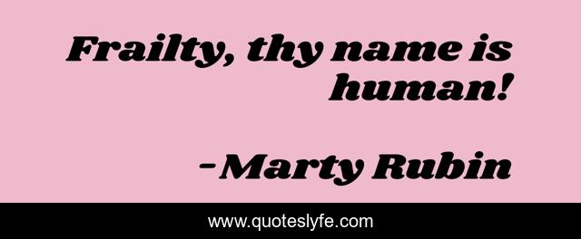 This page presents the quote "Frailty, thy name is human!". Author of this quote is Marty Rubin. This quote is about frailty, humanity, shakespeare,.