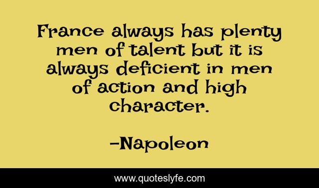 This page presents the quote "France always has plenty men of talent but it is always deficient in men of action and high character.". Author of this quote is Napoleon. .