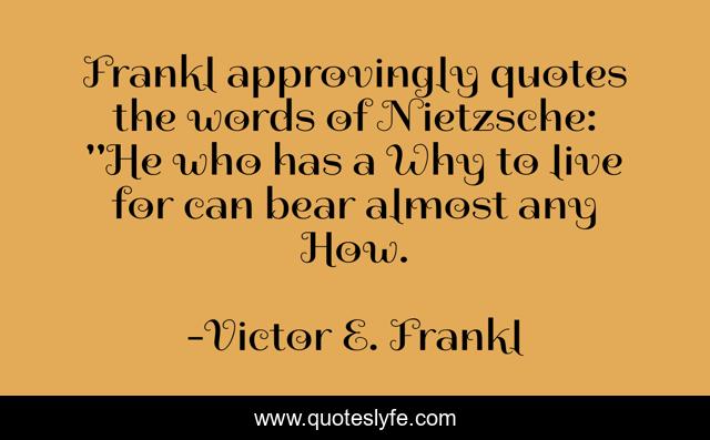 "Victor E. Frankl Quotes." Quoteslyfe.com, 2025. Tue. 09 Dec. 2025. <https://www.quoteslyfe.com/quote/Frankl-approvingly-quotes-the-words-of-Nietzsche-48185>.