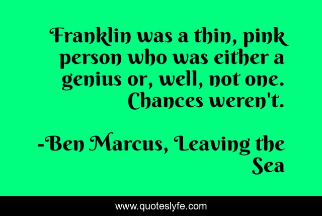 "Ben Marcus, Leaving the Sea Quotes." Quoteslyfe.com, 2025. Tue. 09 Dec. 2025. <https://www.quoteslyfe.com/quote/Franklin-was-a-thin-pink-person-who-230864>.