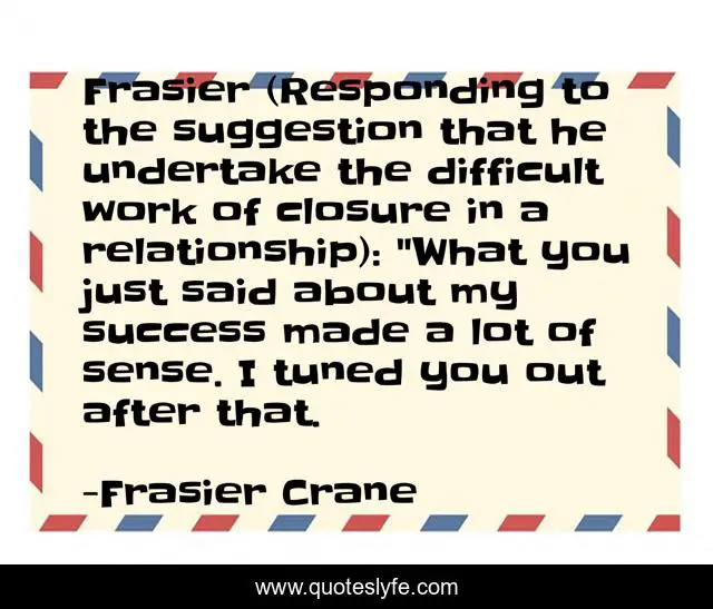 Frasier (Responding to the suggestion that he undertake the difficult work of closure in a relationship): "What you just said about my success made a lot of sense. I tuned you out after that.