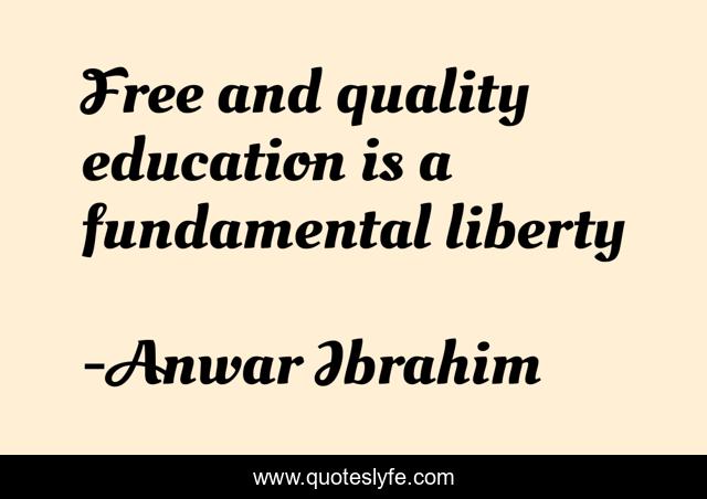 This page presents the quote "Free and quality education is a fundamental liberty". Author of this quote is Anwar Ibrahim. This quote is about education, liberty,.