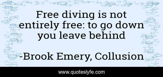 This page presents the quote "Free diving is not entirely free: to go down you leave behind". Author of this quote is Brook Emery, Collusion. This quote is about freedom, poetry,.