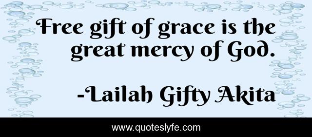 This page presents the quote "Free gift of grace is the great mercy of God.". Author of this quote is Lailah Gifty Akita. This quote is about mercy, inspiring, god, free, christianity, religion, life-lessons, theology, grace,.