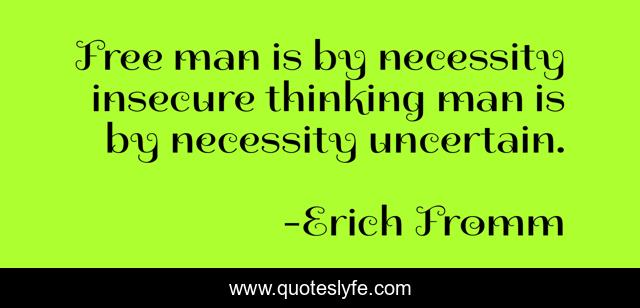 This page presents the quote "Free man is by necessity insecure thinking man is by necessity uncertain.". Author of this quote is Erich Fromm. This quote is about realistic, expectations,.