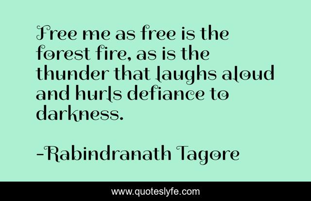 This page presents the quote "Free me as free is the forest fire, as is the thunder that laughs aloud and hurls defiance to darkness.". Author of this quote is Rabindranath Tagore. This quote is about crossing, poem, rabindranath-tagore, spirituality,.